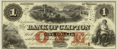 The Bank of Clifton 125-10-04-02 1859 $1 Uncirculated!
