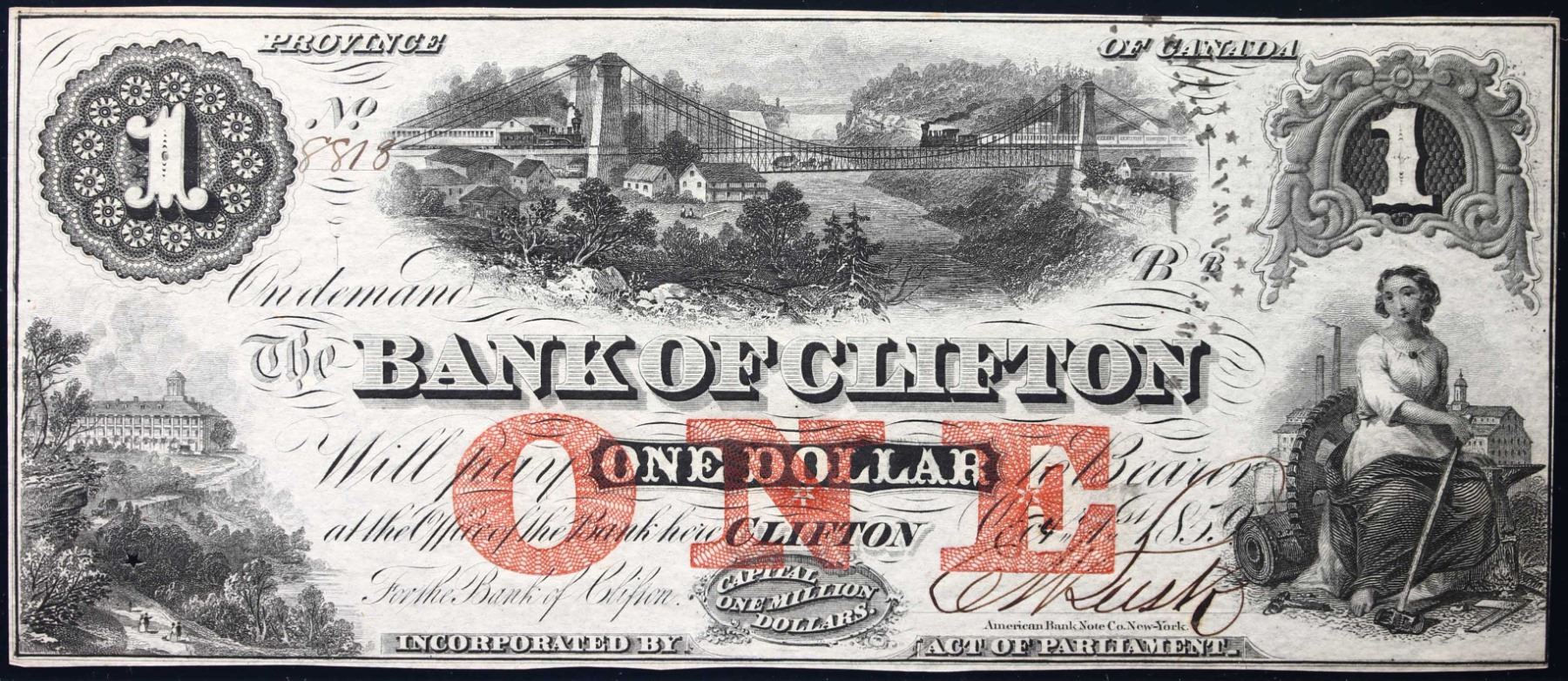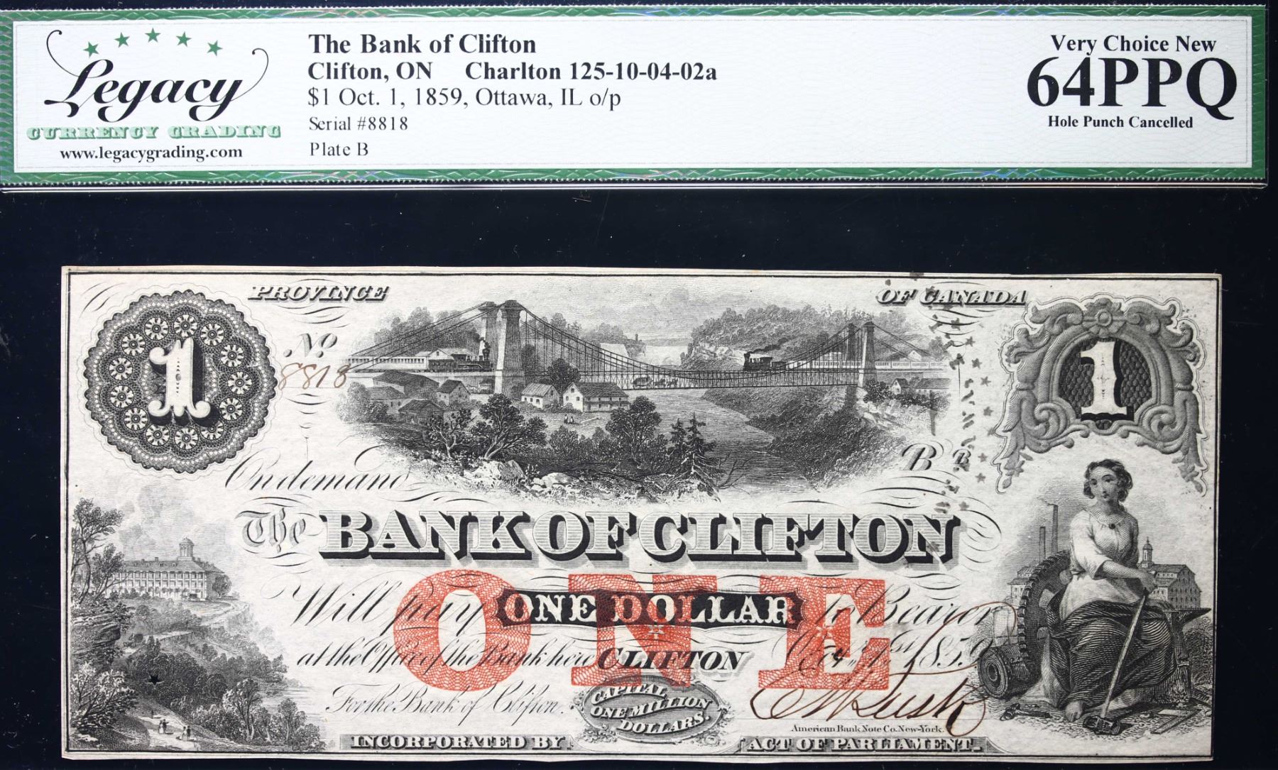 The Bank of Clifton 1859 $1 CH-125-10-04-02a #8818 LCG Choice Uncirculated-64PPQ