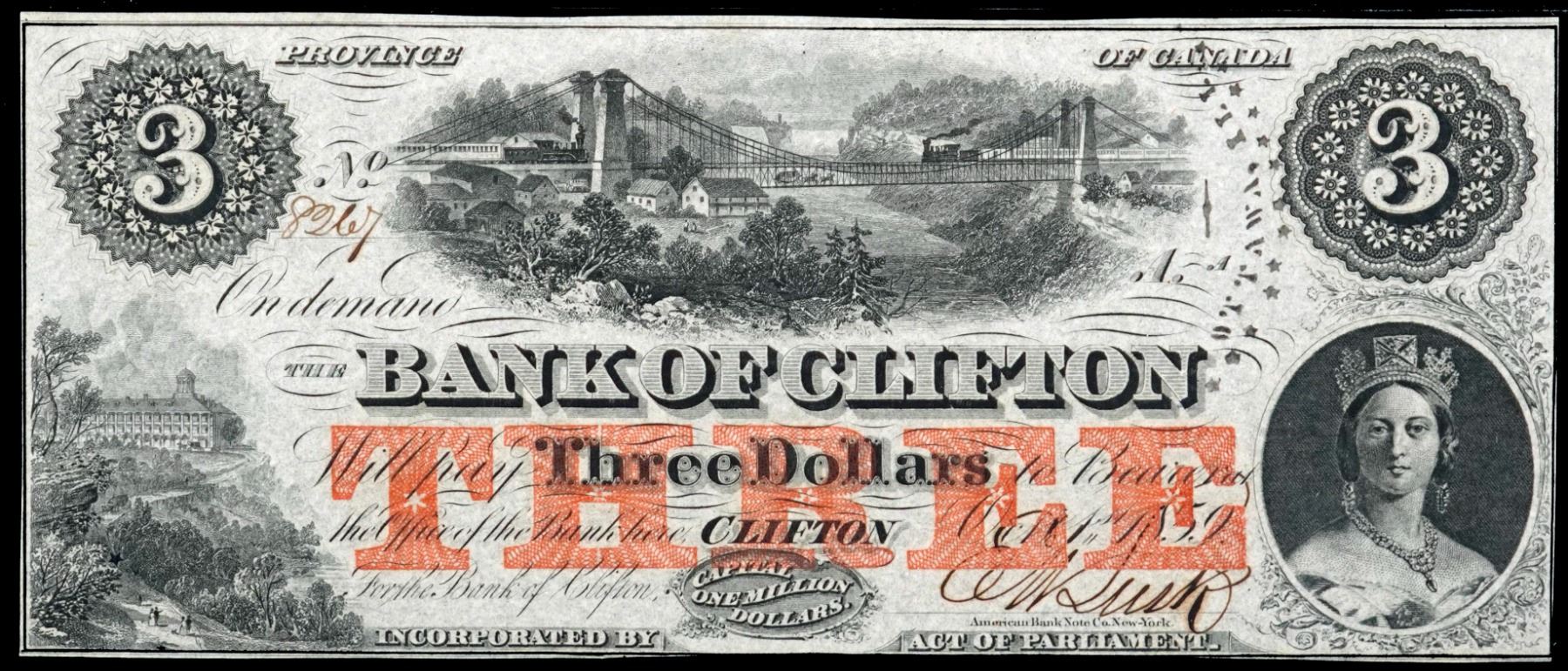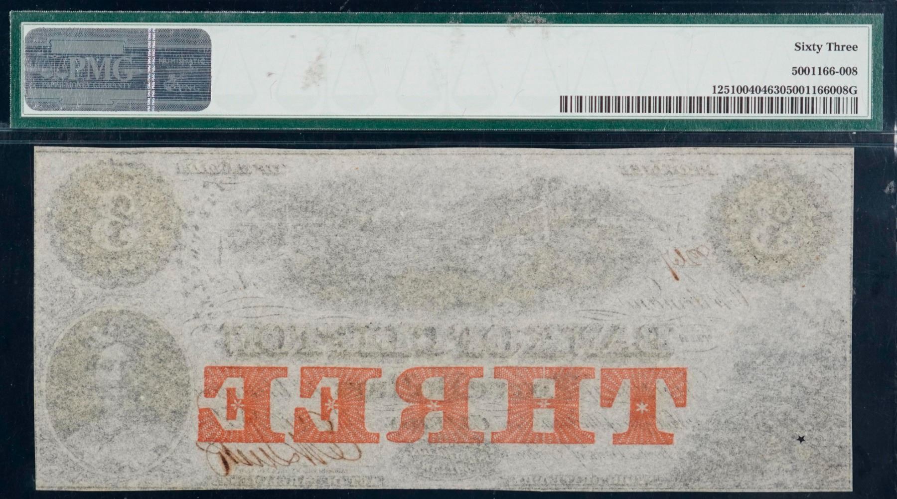The Bank of Clifton 1859 $3 #8267 CH-125-10-04-04 PMG Choice Uncirculated-63.