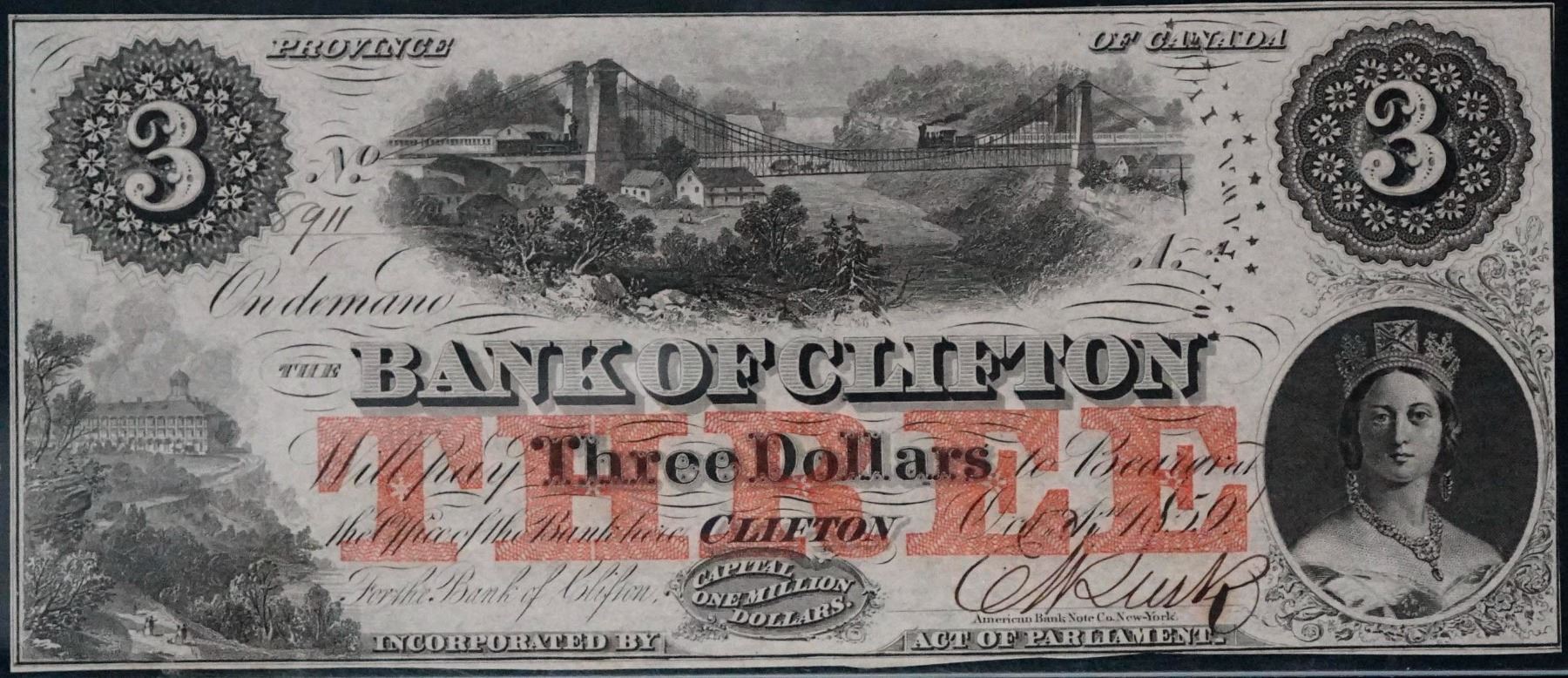 The Bank of Clifton; 1859 $3 #8911 CH-125-10-04-04a, LCG Choice Uncirculated-63PPQ.