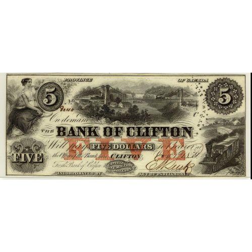 The Bank of Clifton 1859 $5 #8040 CH-125-10-04-06 Choice Unc