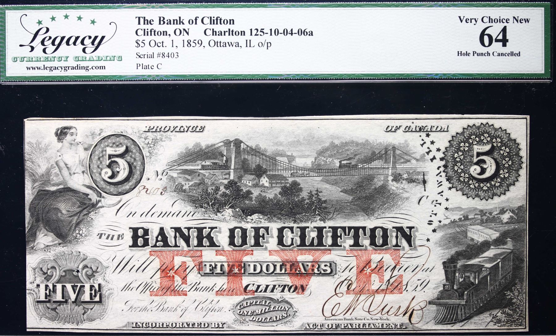 The Bank of Clifton; 1859 $5 CH-125-10-04-06A #8403 Legacy Choice Uncirculated-64