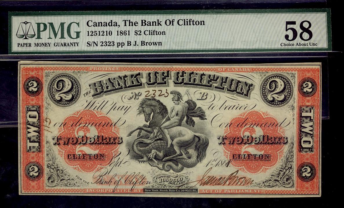 The Bank of Clifton 1861 $2 #2323 CH-125-12-10 PMG CH AU58.
