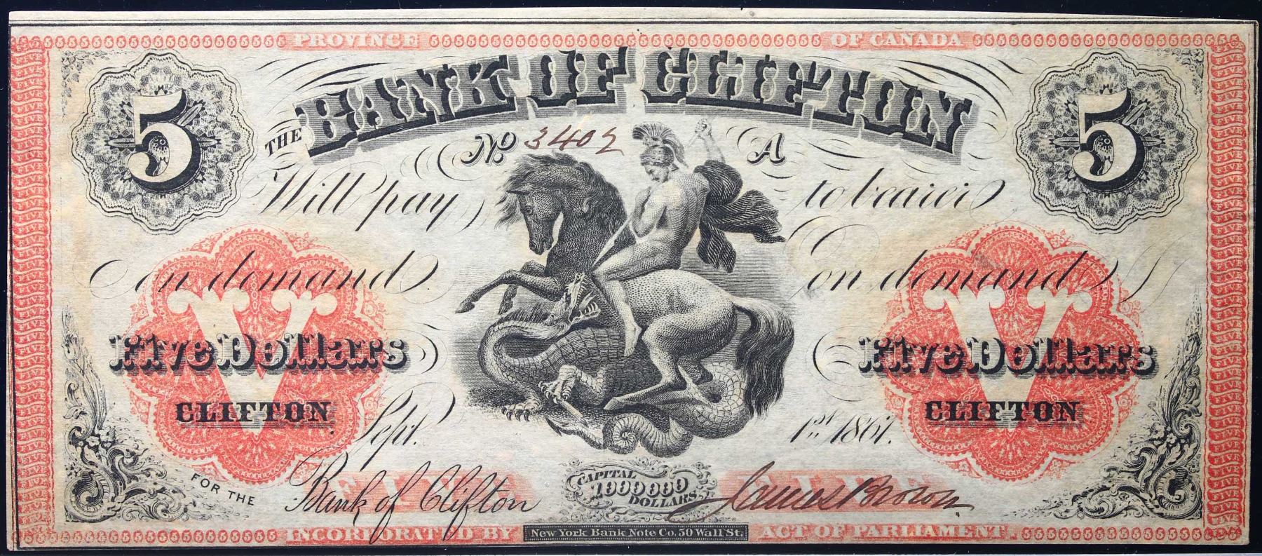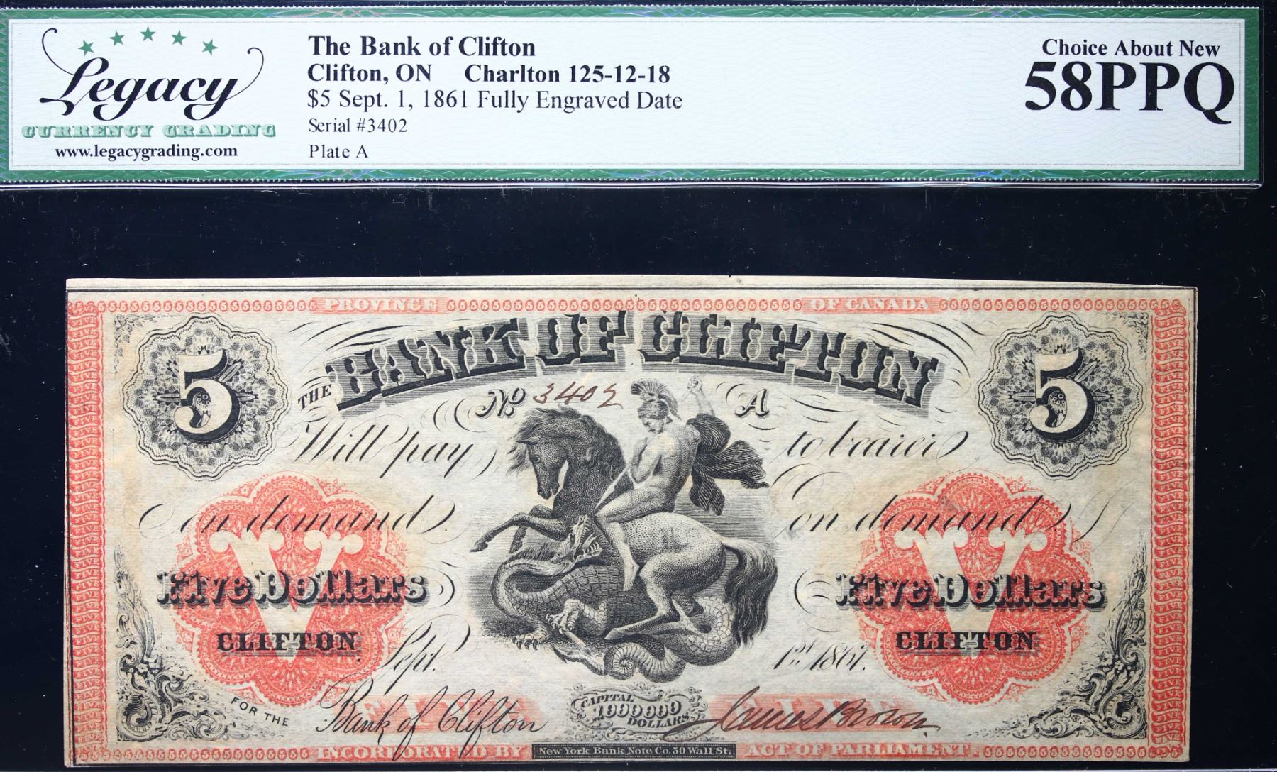 The Bank of Clifton 1861 $5 CH-125-12-18 #3402 Legacy Choice Choice About Uncirculated-58PPQ