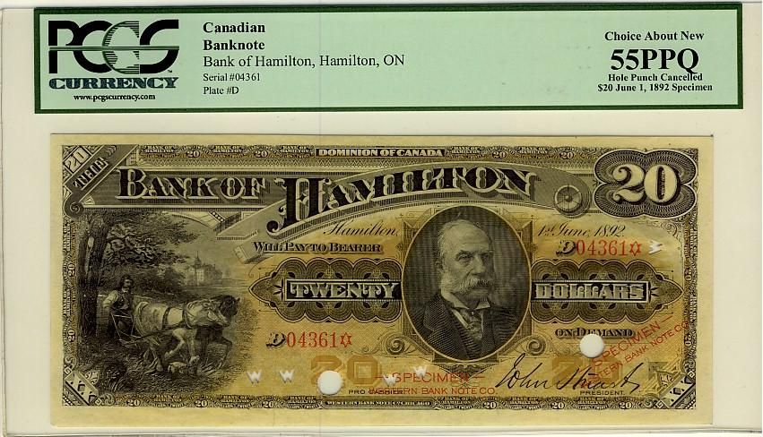 The Bank of Hamilton, 1892 $20, #04361, SP , CH-345-16-06S, PCGS AU55PPQ