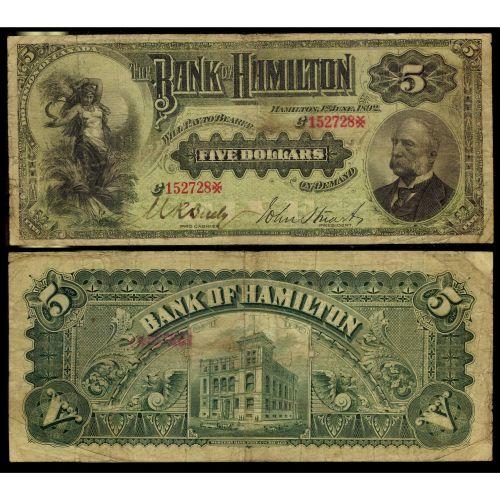The Bank of Hamilton 1892 $5 #152728 CH-345-16-02a Fine