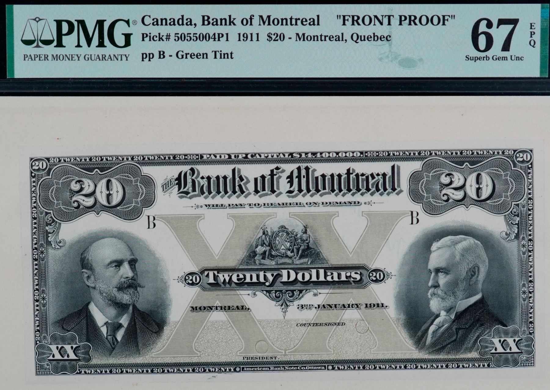 The Bank of Montreal; 1911 $20 CH-505-50-04P, PMG Superb Gem Uncirculated-67EPQ.