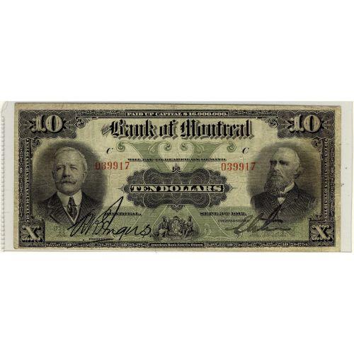 The Bank of Montreal 1912 $10 Fine CH505-52-04. A rare issue seldom seen offered up for sale.