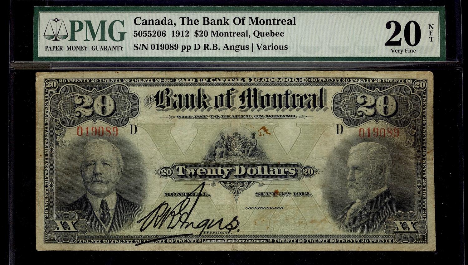 The Bank of Montreal, 1912 $20 #019089 CH-505-52-06. PMG VF20.