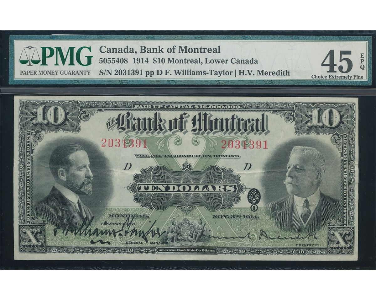 The Bank of Montreal; 1914 $10 #2031391 CH-505-54-08, PMG CH EF45EPQ.
