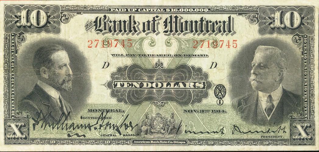 The Bank of Montreal 1914 $10 No.2719745 CH-505-54-08 VF-EF