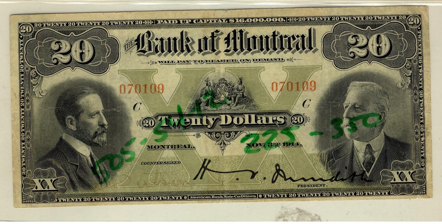 The Bank of Montreal 1914 $20 CH-505-54-12 #070109. Nice Fine.