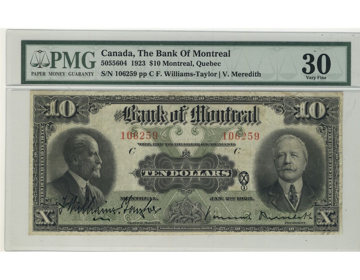 The Bank of Montreal; 1923 $10 #106259 CH-505-56-04 PMG VF30.