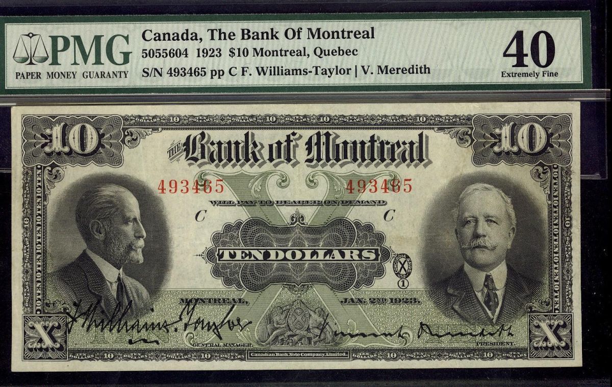 The Bank of Montreal 1923 $10 #493465 CH-505-56-04 PMG EF40