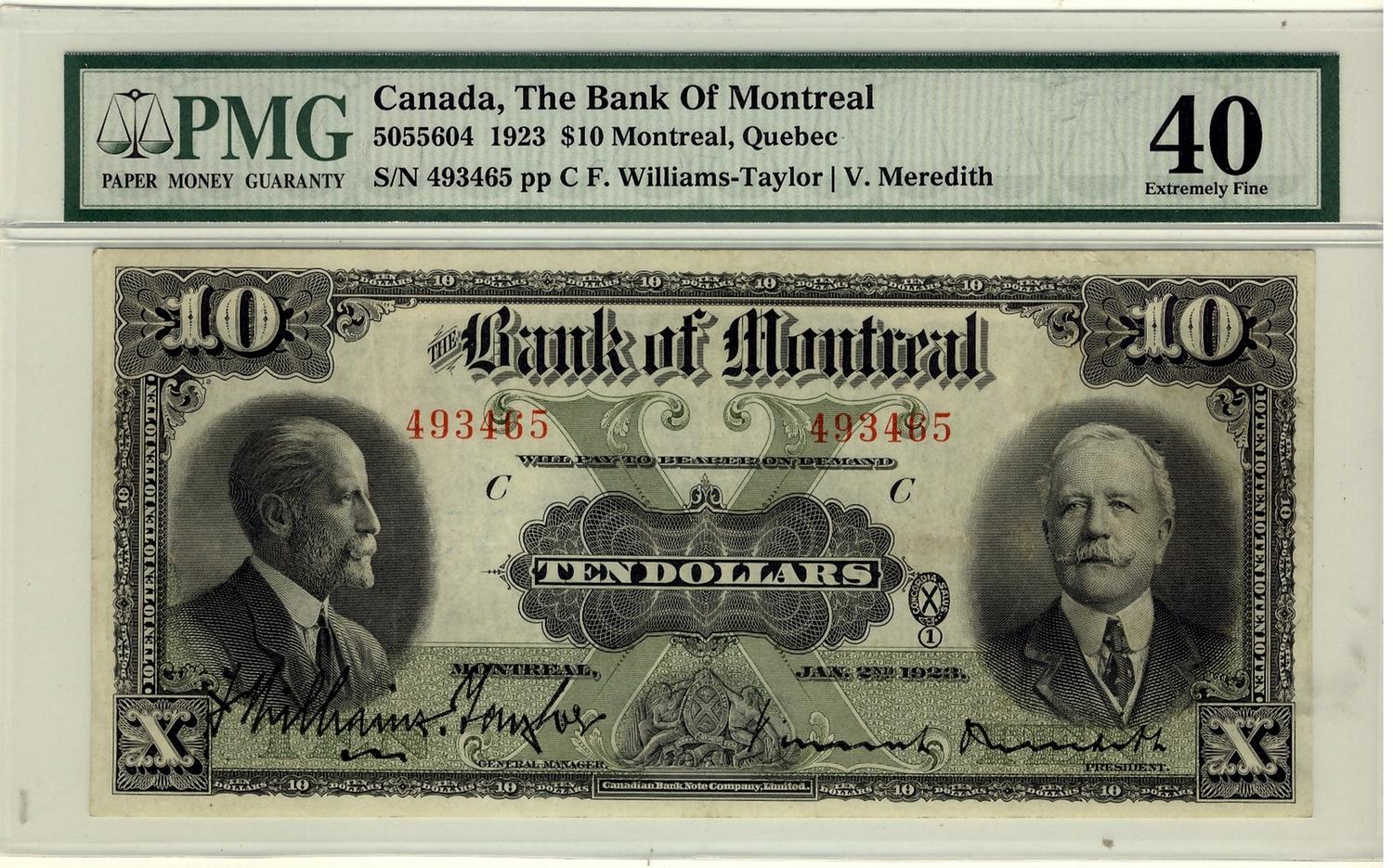 The Bank of Montreal 1923 $10 CH-505-56-04 #493465, PMG EF40.