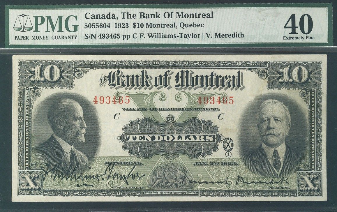 The Bank of Montreal 1923 $10 CH-505-56-04 #493465, PMG EF40.
