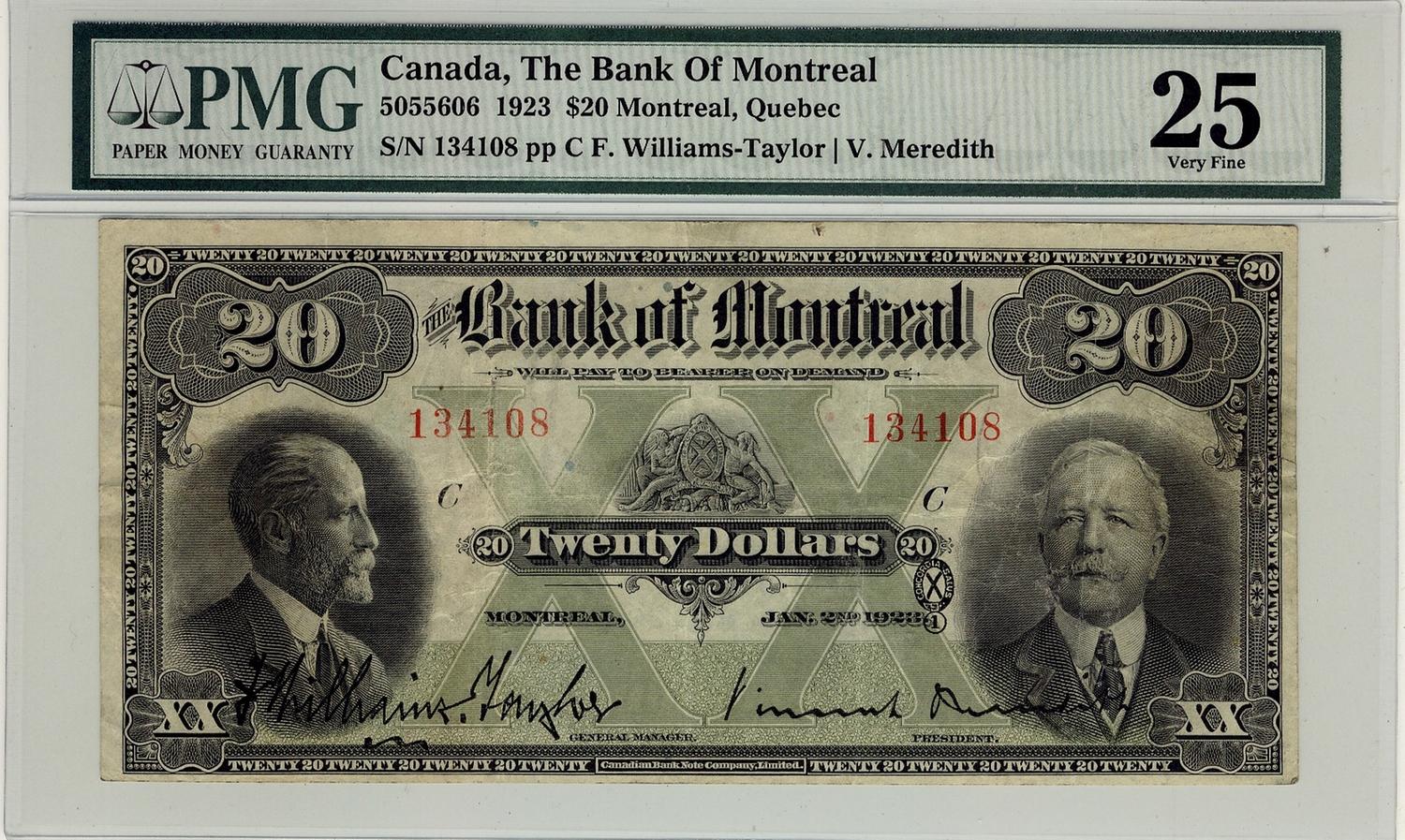 The Bank of Montreal, 1923 $20 #134108, CH-505-56-06, PMG VF25