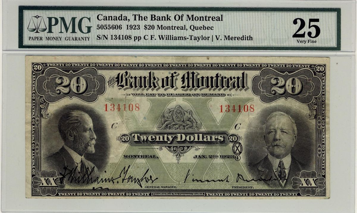 The Bank of Montreal, 1923 $20 #134108, CH-505-56-06, PMG VF25