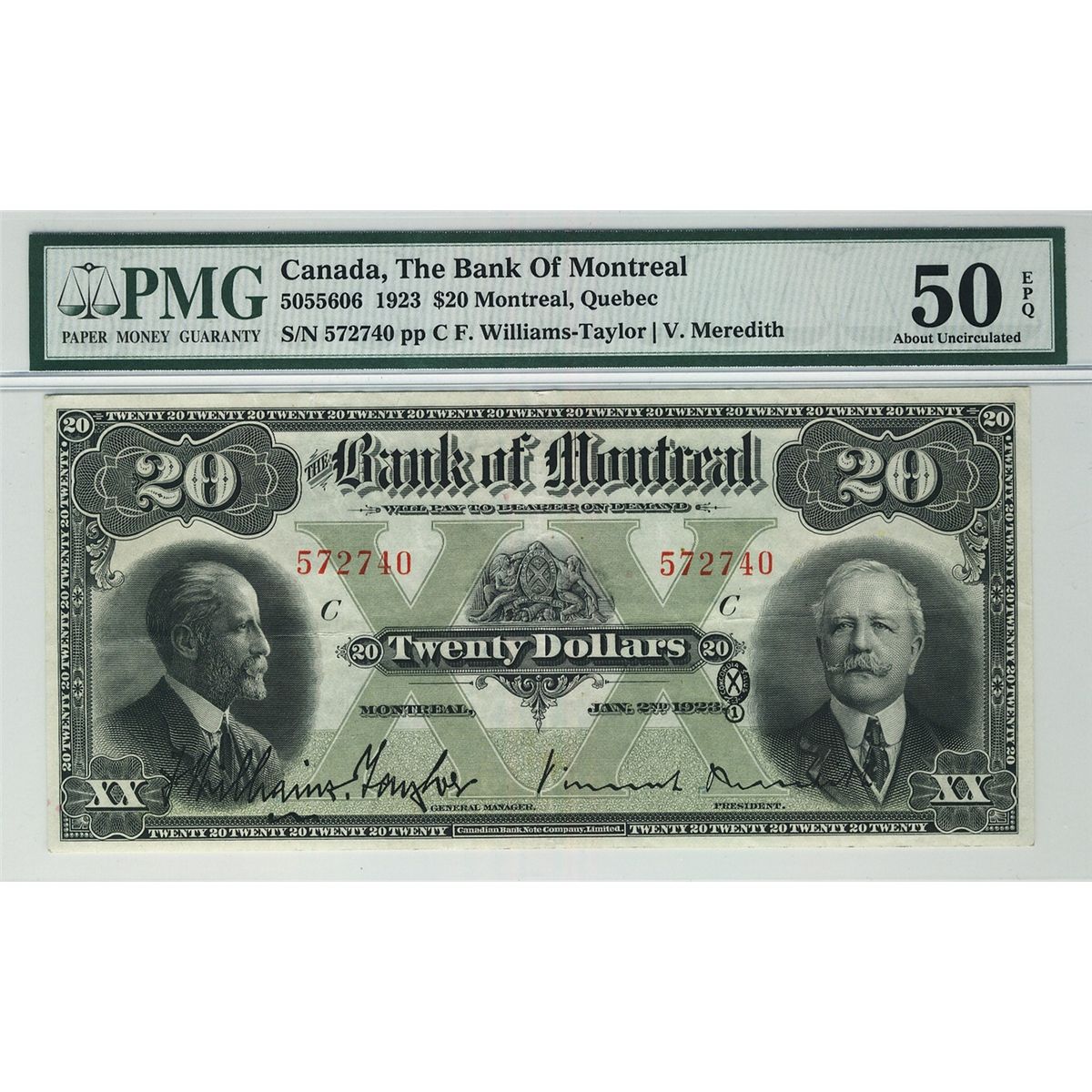 The Bank of Montreal 1923 $20 572740 CH-505-56-06 PMG AU50.