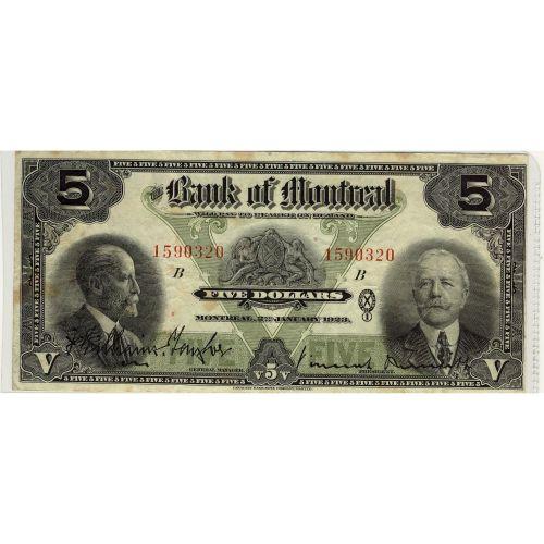 The Bank of Montreal 1923 $5 # 1590320 CH-505-56-02 VF