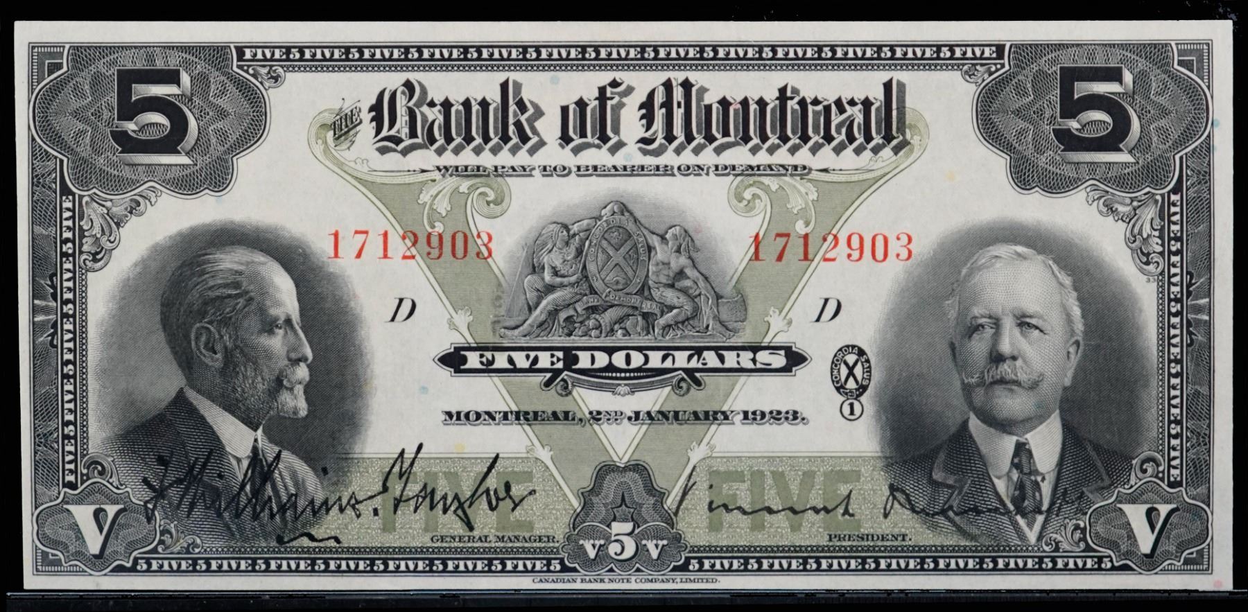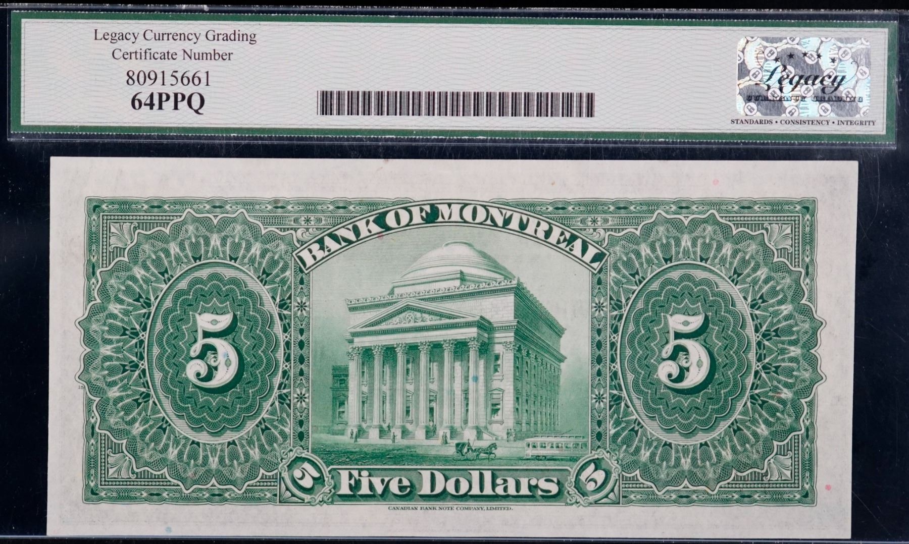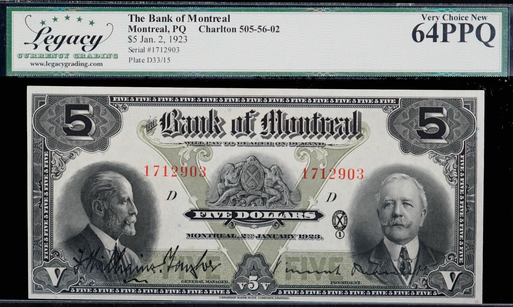 The Bank of Montreal 1923 $5 1712903 CH-505-56-02 Legacy Currency Grading Choice Uncirculated-64PPQ