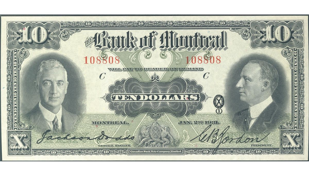 The Bank of Montreal; 1931 $10 #108808 CH-505-58-04 PMG Gem UNC66EPQ.