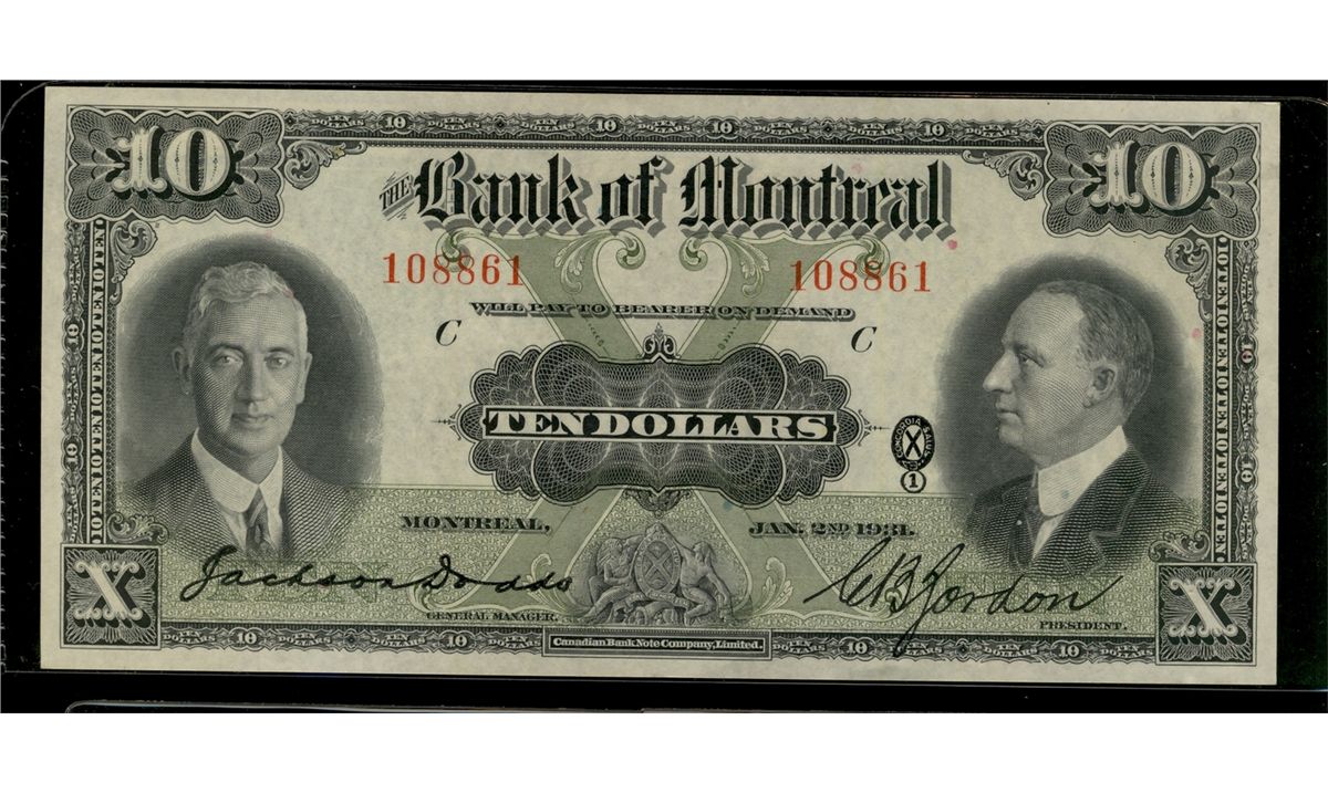The Bank of Montreal; 1931 $10 #108861 CH-505-58-04. EF+ with light handling.