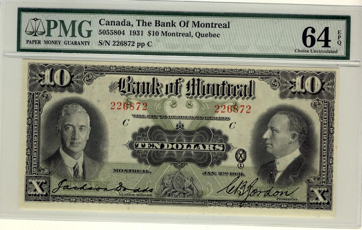 The Bank of Montreal 1931 $10 #226872 CH-505-58-04 PMG CH UNC64 EPQ.
