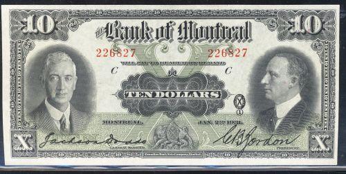 The Bank of Montreal 1931 $10 No.226827 choice uncirculated.