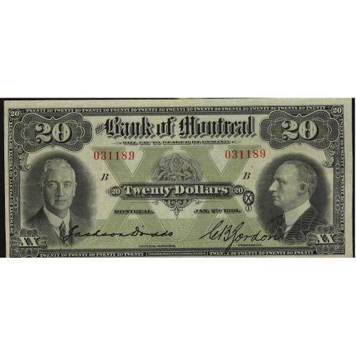 The Bank of Montreal 1931 $20 #031189 CH-505-58-06 about EF. Scarce note