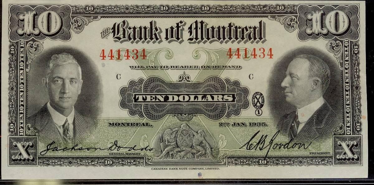 The Bank of Montreal 1935 $10 #441434 CH-505-60-02 Uncirculated