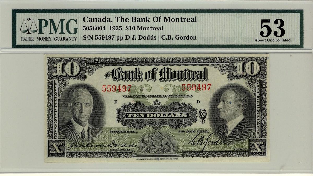 The Bank of Montreal, 1935 $10 #559497, CH-505-60-04, PMG AU53,