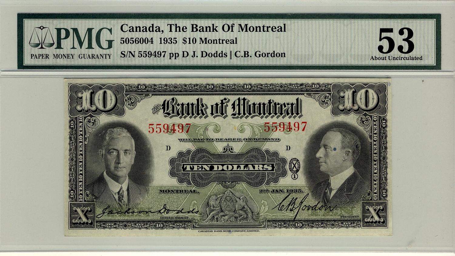 The Bank of Montreal, 1935 $10 #559497, CH-505-60-04, PMG AU53,