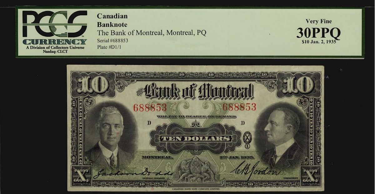 The Bank of Montreal 1935 $10 #688853 CH-505-60-04 PCGS VF30PPQ.
