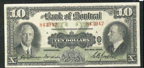 The Bank of Montreal 1935 $10 843942 CH-505-60-04 VF-EF.
