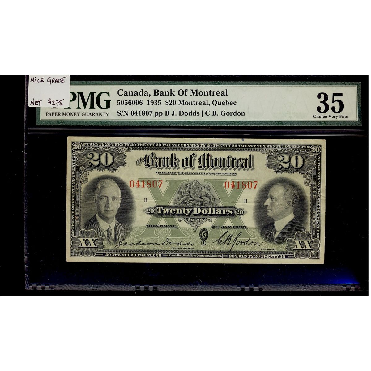 The Bank of Montreal 1935 $20 #041807 CH-505-60-06 PMG VF35.