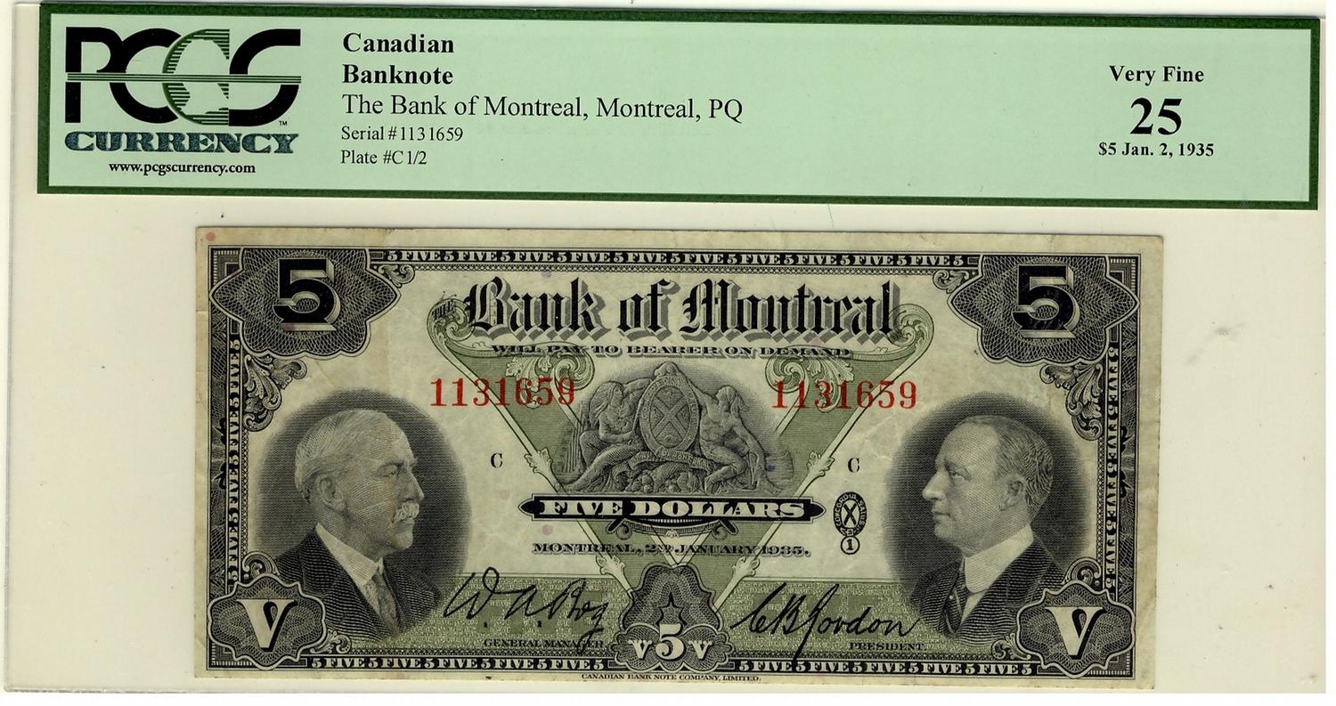 The Bank of Montreal 1935 $5 #1131659 PCGS VF25.