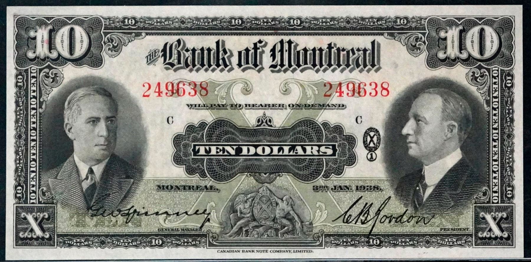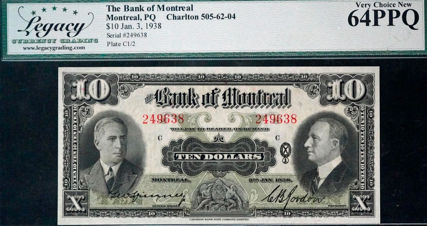 The Bank of Montreal; 1938 $10 #249638 CH-505-62-04, LCG Choice Uncirculated-64PPQ.