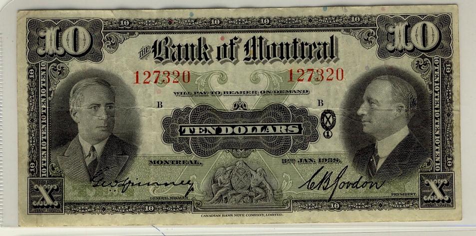 The Bank of Montreal, 1938 $10, CH-505-62-04. A nice note V