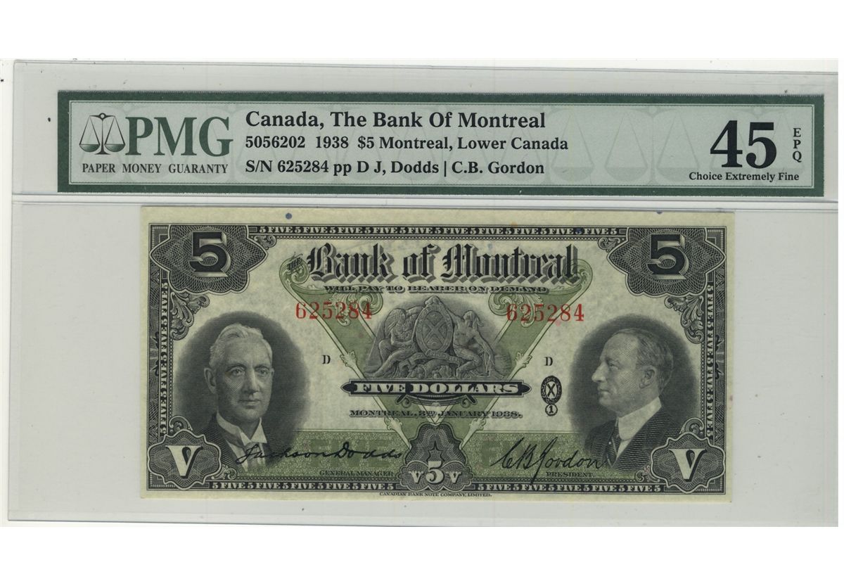 The Bank of Montreal; 1938 $5 #625284 CH-505-62-02 PMG EF45EPQ.