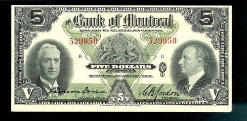 The Bank of Montreal $5 1938 529950 CH-505-62-02 EF/EF+. A nice note!