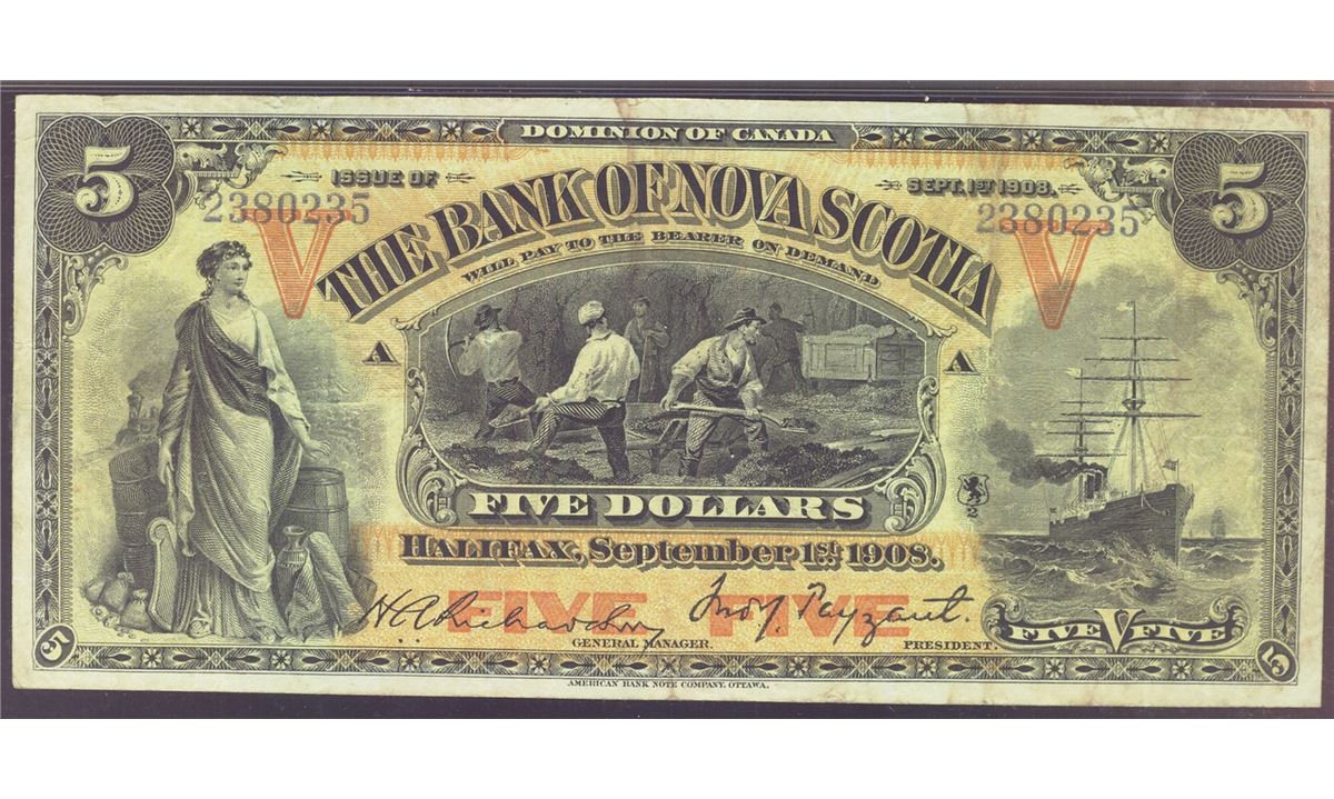 The Bank of Nova Scotia 1908 $5, #2380235, CH-550-28-12a, PMG VF25.