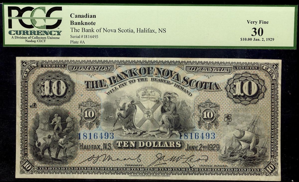The Bank of Nova Scotia 1929 $10 #1816493 CH-550-18-20 PCGS VF30.