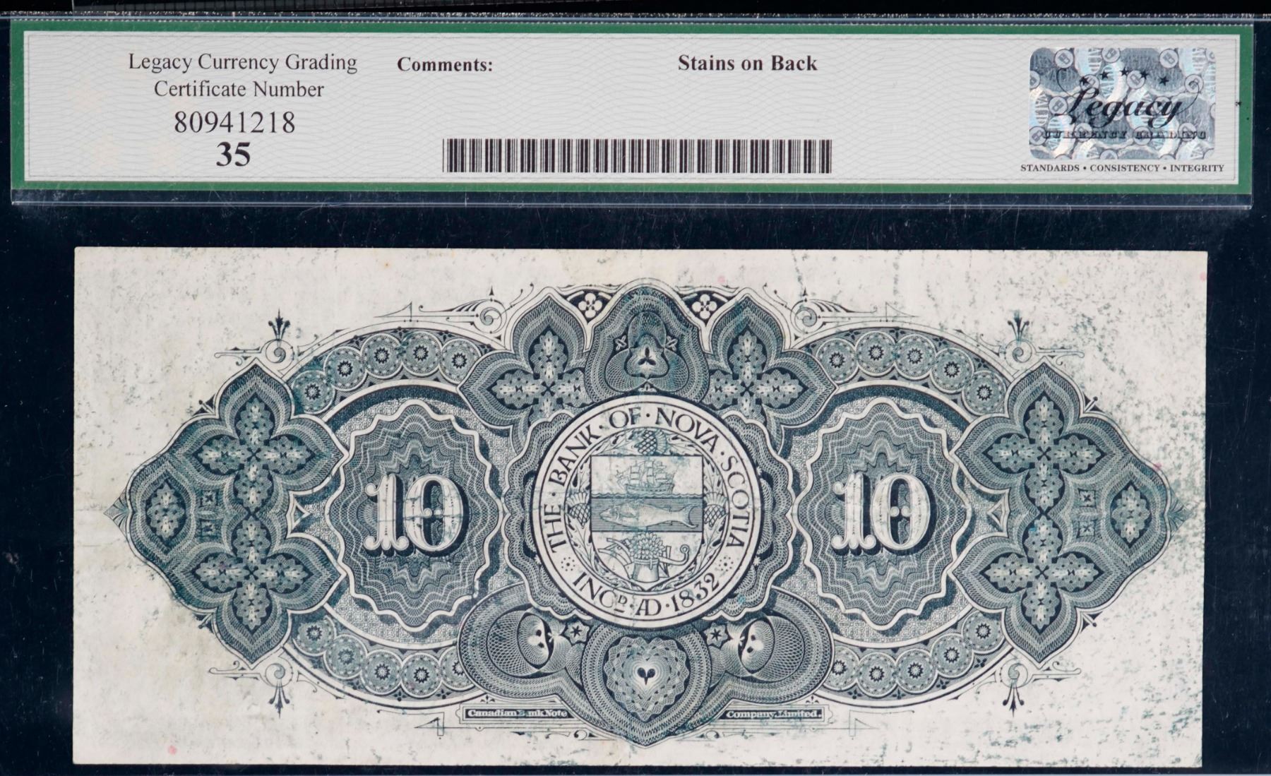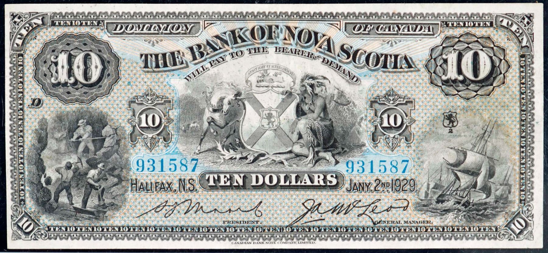 The Bank of Nova Scotia; 1929 $10 #931587 CH-550-18-20a, Legacy Choice Very Fine-35 with minor issues. "Blue-Green tint.