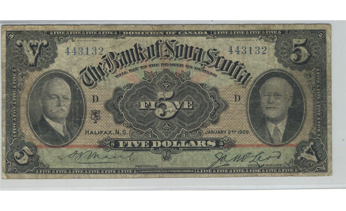 The Bank of Nova Scotia 1929 $5 CH-550-34-02 PMG F-12.