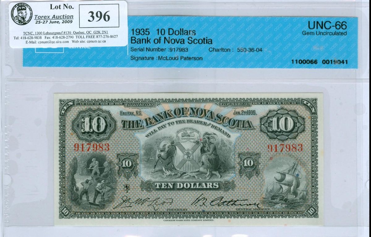 The Bank of Nova Scotia 1935 $10 #917983 CH-550-36-04 CCCS Gem UNC66.