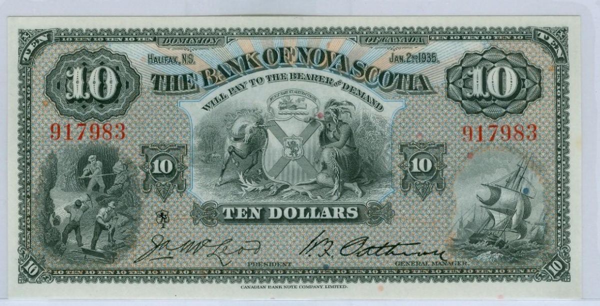The Bank of Nova Scotia 1935 $10 #917983 CH-550-36-04 CCCS Gem UNC66.