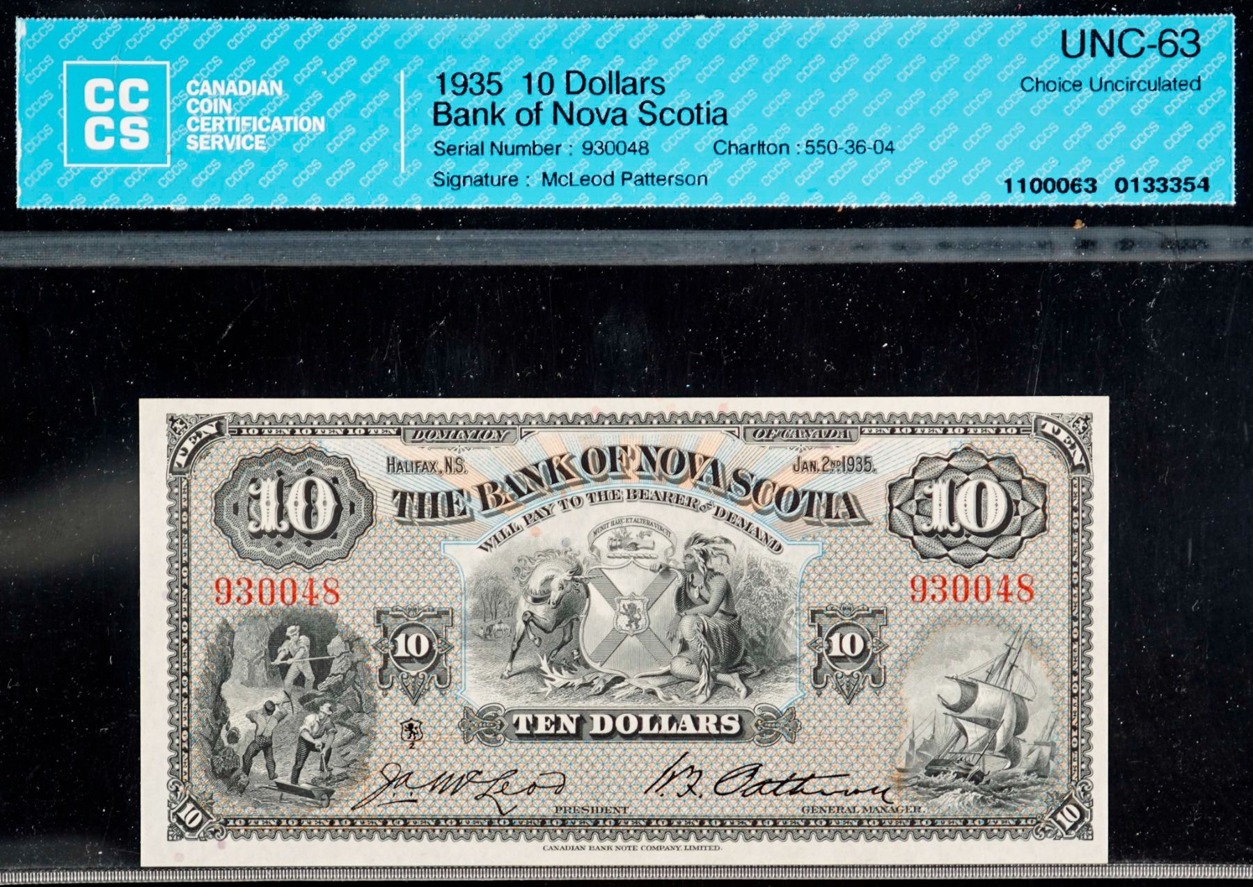 The Bank of Nova Scotia 1935 $10 #930048 CH-550-36-04 CCCS Choice Uncirculated-63