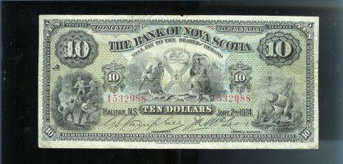The Bank of Nova scotia, $10 1924 CH-550-18-18 No. 1532988 F+, a popular bank!