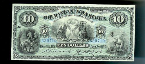 The Bank of Nova scotia, $10 1929 CH-550-18-20 No. 639719 EF.